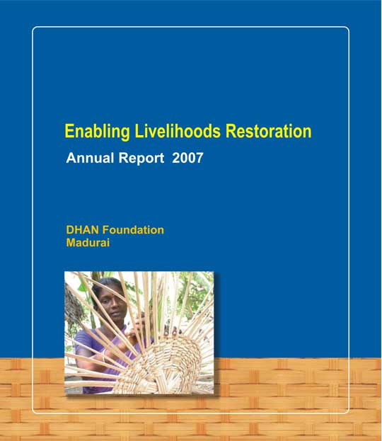 DHAN Foundation is working in the Tsunami affected coastal districts of Tamil Nadu, Andhra Pradesh and Puducherry with a long term vision of building peoples' institutions to promote sustainable livelihoods with disaster preparedness and conservation focus. These people's institutions address the diversified needs of community such as livelihood security, health, education, conservation of natural resources, diasaster preparedness and early warning. In addition they collaborate with mainstream institutions such as government, banks, insurance agencies, research and academic institutions to converge all the resources at the grassroots.