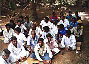 The first network meeting was organised in Thirukalukundram block of Kancheepuram district on 10th May 2005. About 20 participants (Panchayat leaders) from 8 villages participated in the meeting and shared their role and experiences. The participants are: Mr.Murugesan, Mr. K.P.Rayar, Mr.T.Ezhumalai-South Sadras kuppam Mr.S.P. Kumar, Mr. Thangaraj, Mr.Padavettan-Meiyur kuppam. Mr.Gunasekaran, Mr.Sivanandham, Mr.Dosappan-Pudupattinam kuppam Mr.Gunasekar,Mr.Sankar-Devaneri kuppam Mr.Boopalan, Mr.M.Durai, Mr.K.Baskar-Mamallapuram kuppam Mr.Moorthi, Mr.Gothandaraman, Mr.Ramjeyam-Uyyalikuppam Mr.Thiyagarajan, Mr.Krishnan-North Sadras Mr.Sundar (Volunteer)-Kovalam.